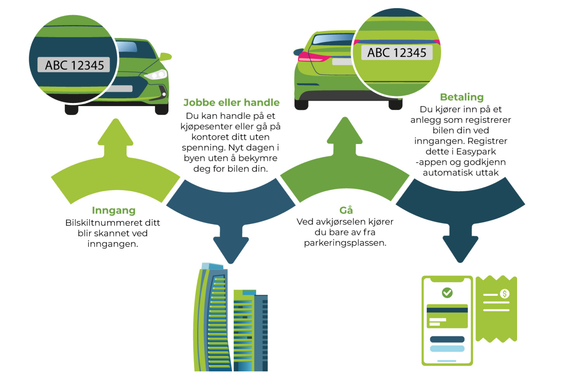 Vi bruker et lisensnummergjenkjenningssystem med 2 kameraer, 1 for å skanne bilen foran og 1 for å skanne baksiden når du forlater parkeringsplassen. Denne videoen blir behandlet av maskinlæring og bildegjenkjenningsprogramvare, under alle miljøforhold gir den 99,9% nøyaktighet.
